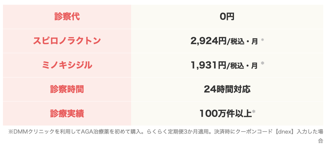 ※DMMクリニックを利用して初めて購入。らくらく定期便3か月適用。決済時にクーポンコード【dnex】入力した場合